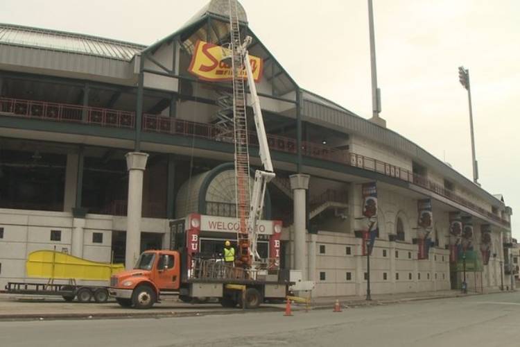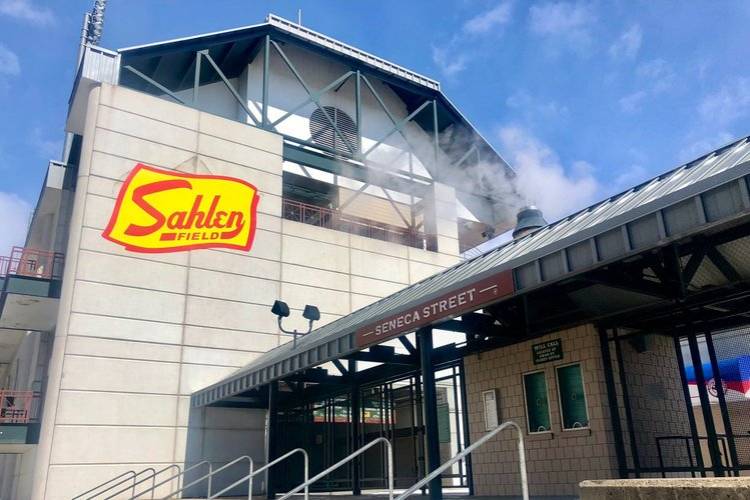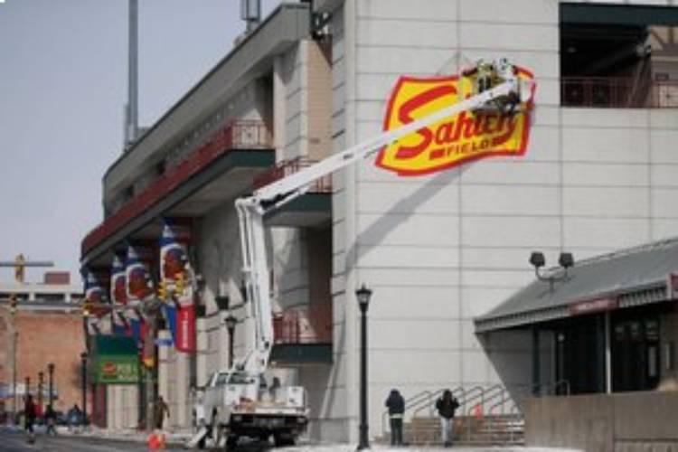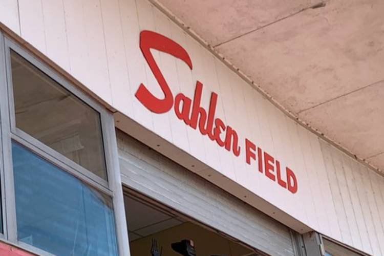 fabricating and installing five large exterior signs by routing and painting 1/8” aluminum sheets with applied vinyl to display the new Sahlen field logo along with the Sahlen field pin letters below the press box.